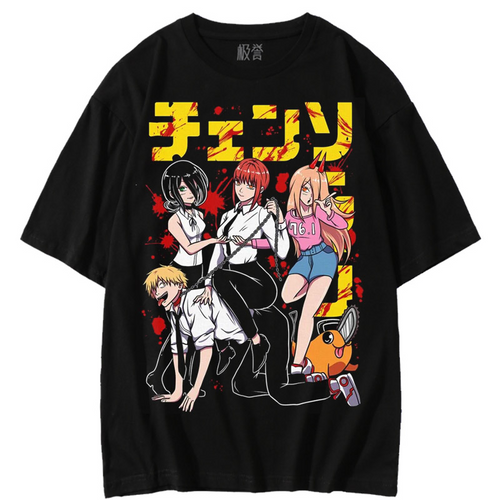 Chainsaw Man Vintage Black Summer T-shirt
