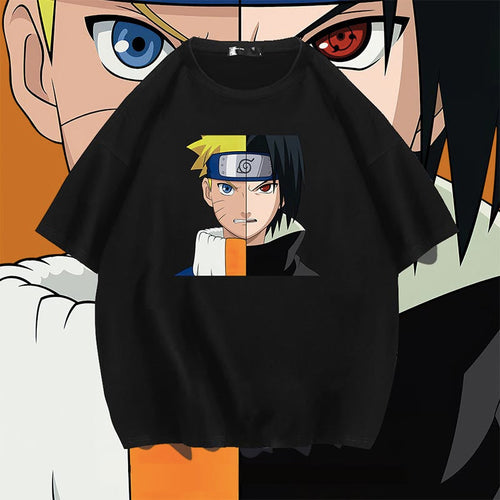 Naruto Uzumaki and Sasuke Uchiha Half Face Summer T-shirt