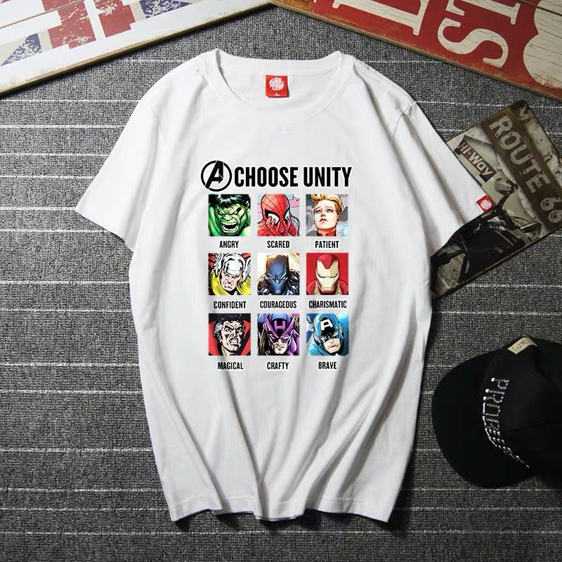 Angry, scared, patient, confident, courageous, charismatic, magical, crafty, brave - collect all superheroes' facial expressions via this tee.