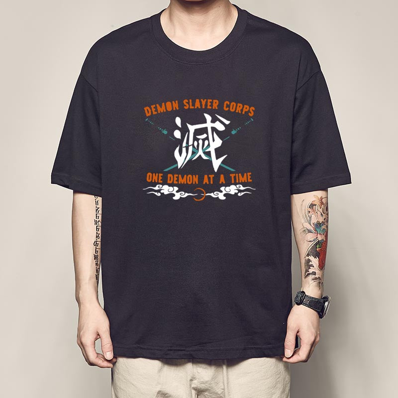 Demon Slayer Corps symbol printed on the front chest with classic "One Demon At a Time".
