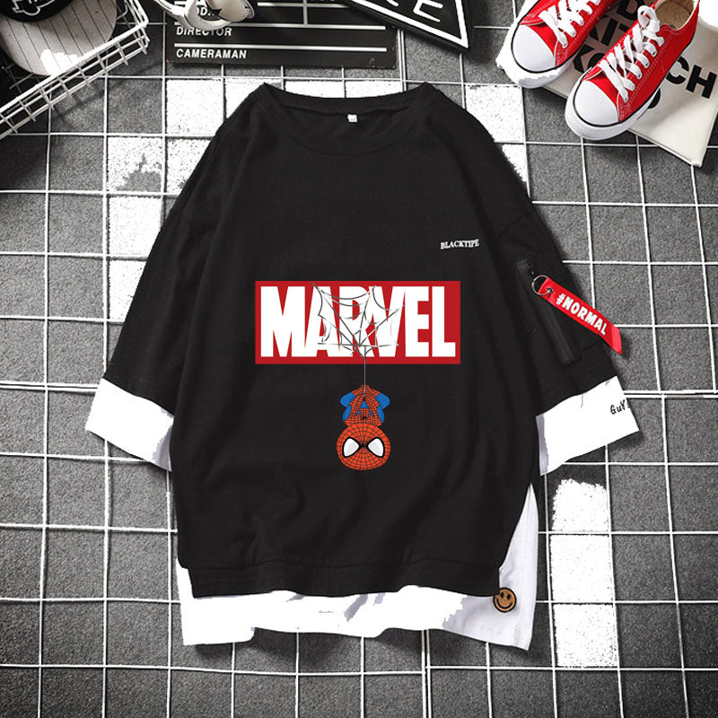 - Marvel logo in the center with hanged Spider-Man/Deadpool/Captain America