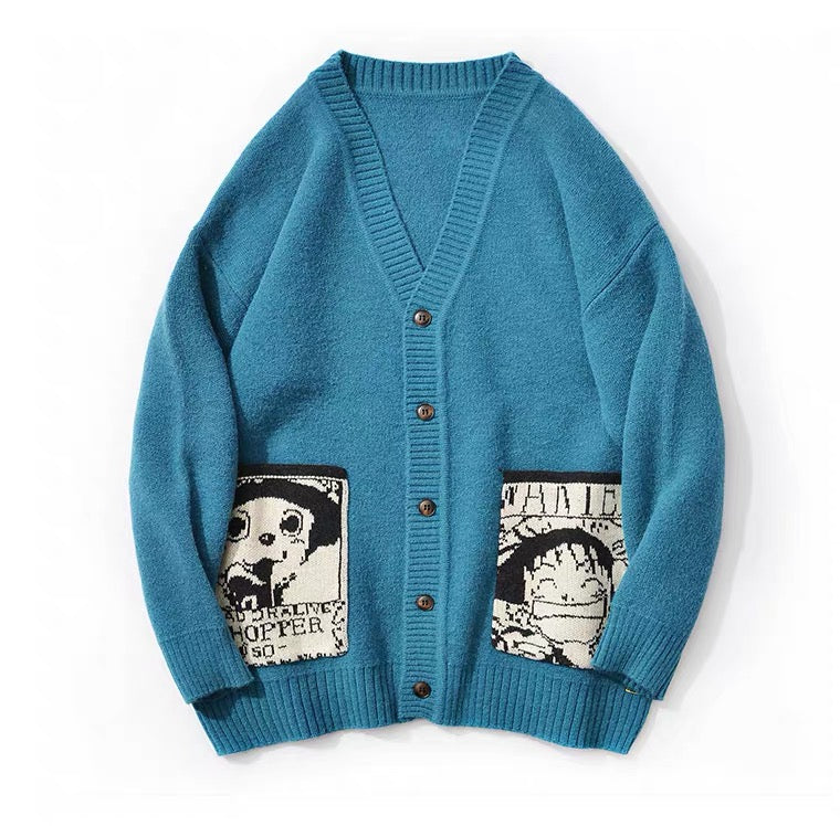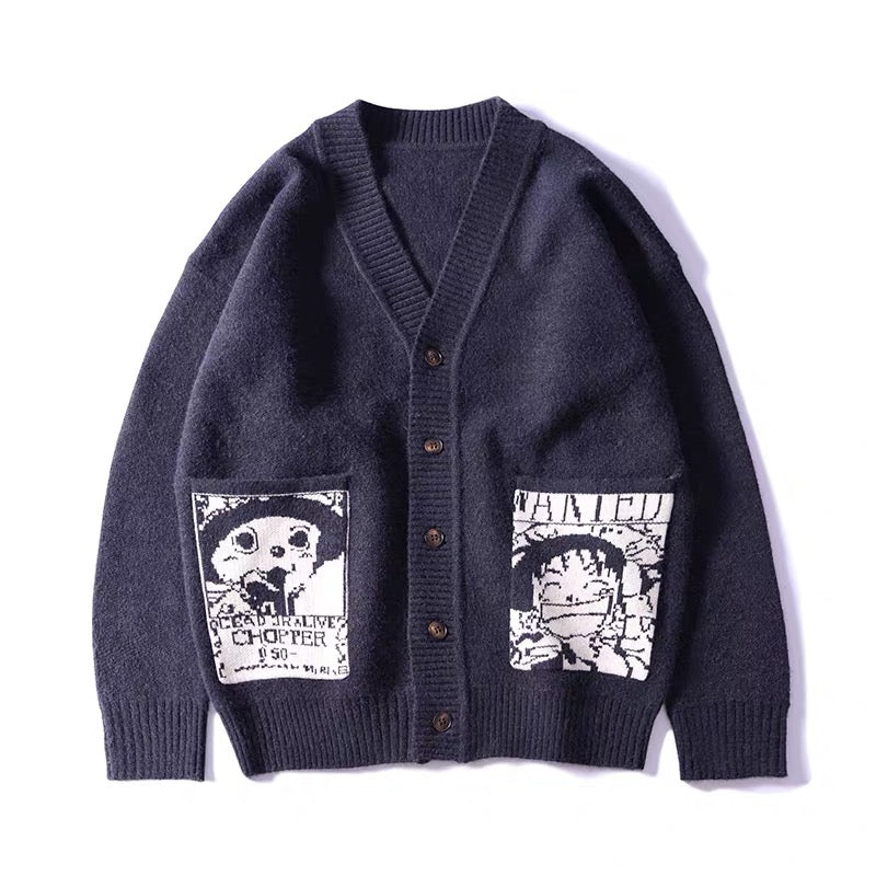 - Featuring Tony Tony Chopper knitted on the right pocket and Luffy knitted on the left pocket. - Stay warm and stylish when temperature drops.