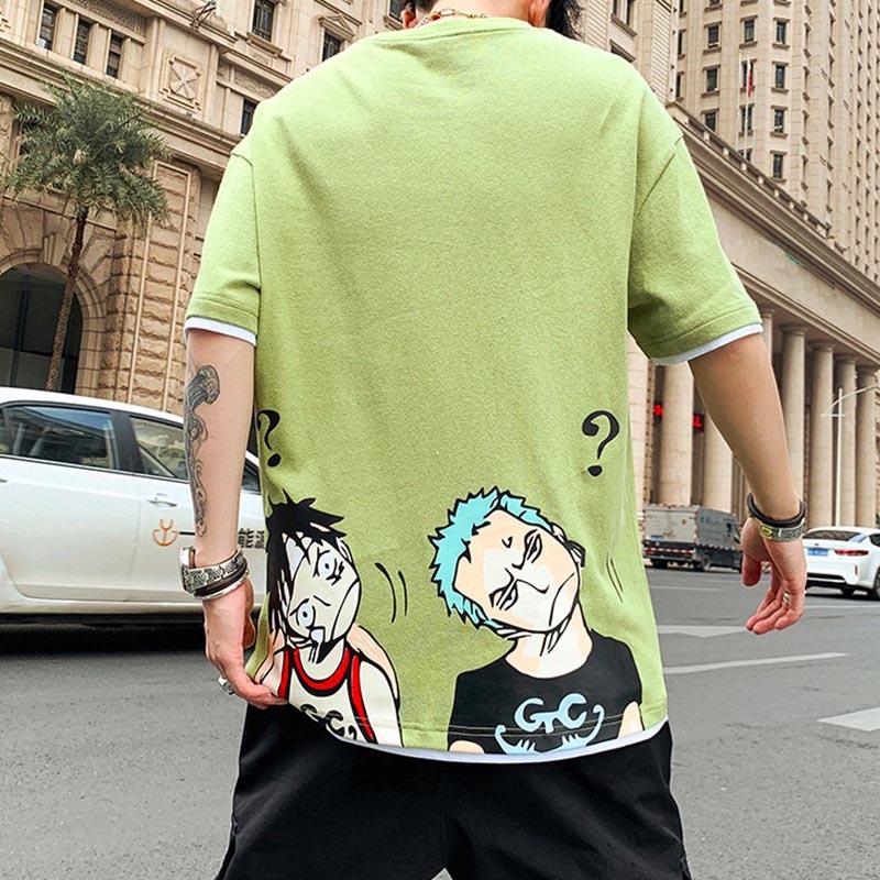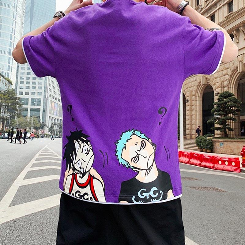 Monkey D. Luffy and Zoro with their heads tilted and two question marks printed above. - It seems they are thinking about a huge problem.