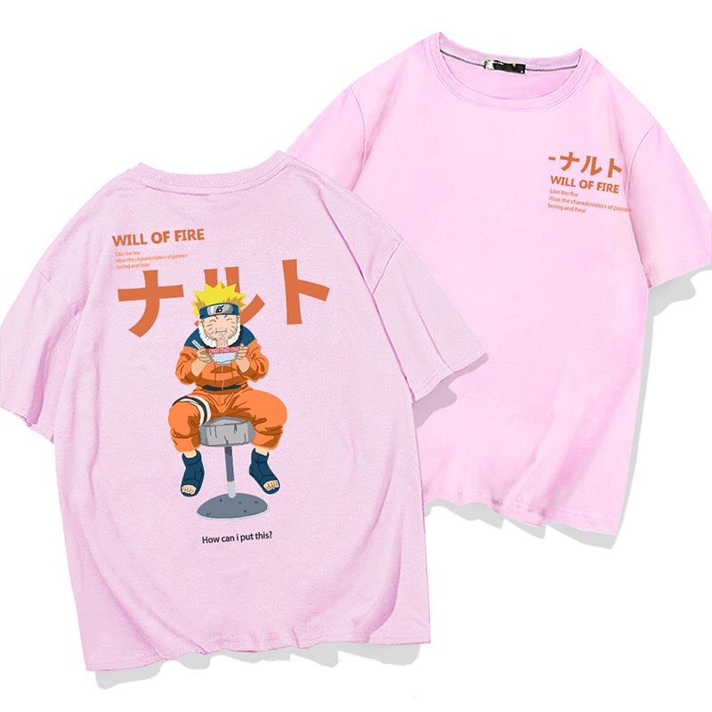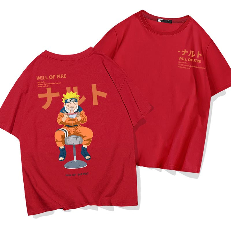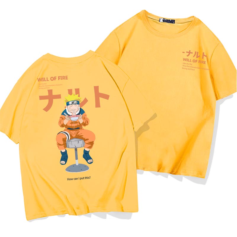 Inspired from Naruto Shippuden - Uzumaki classic graphic of eating noodles printed at back.