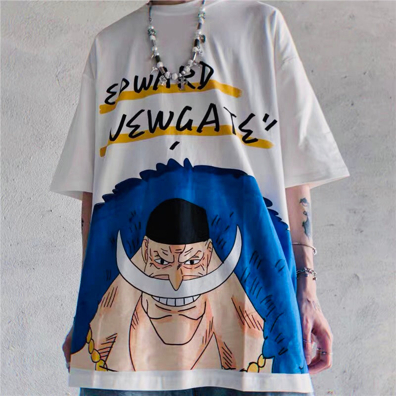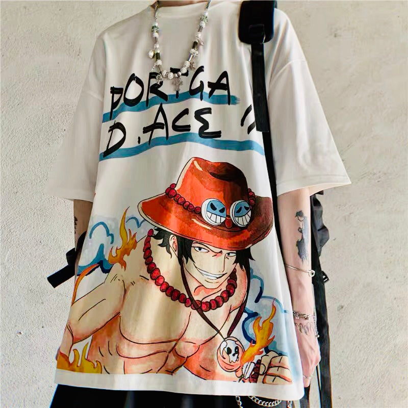 Doodled printing of One Piece characters fully covered on front.